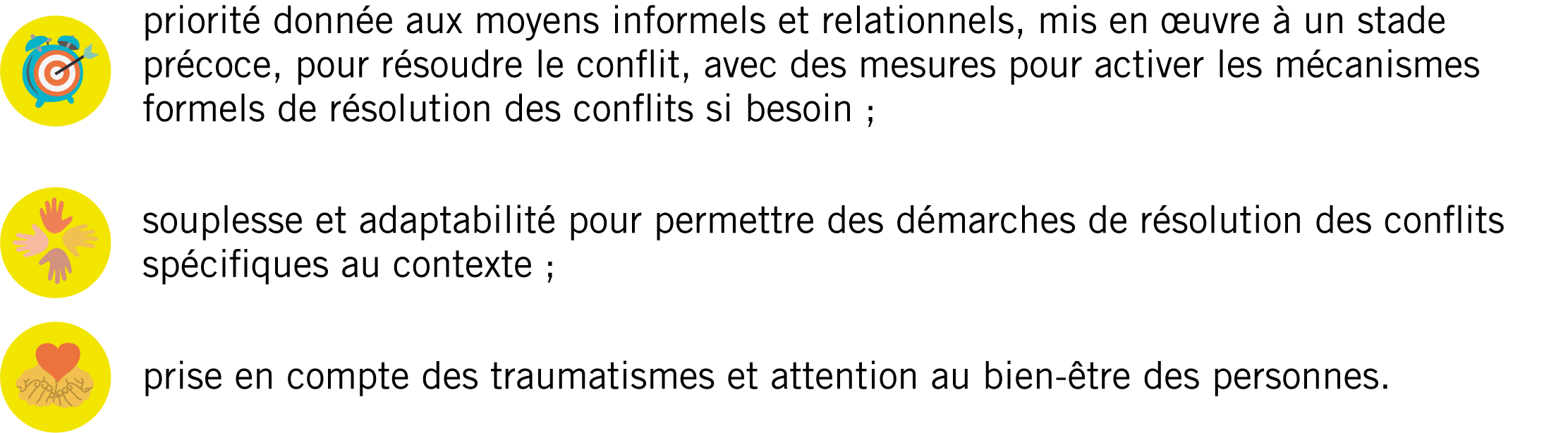 Les principaux aspects du Processus de résolution des conflits sont les suivants :